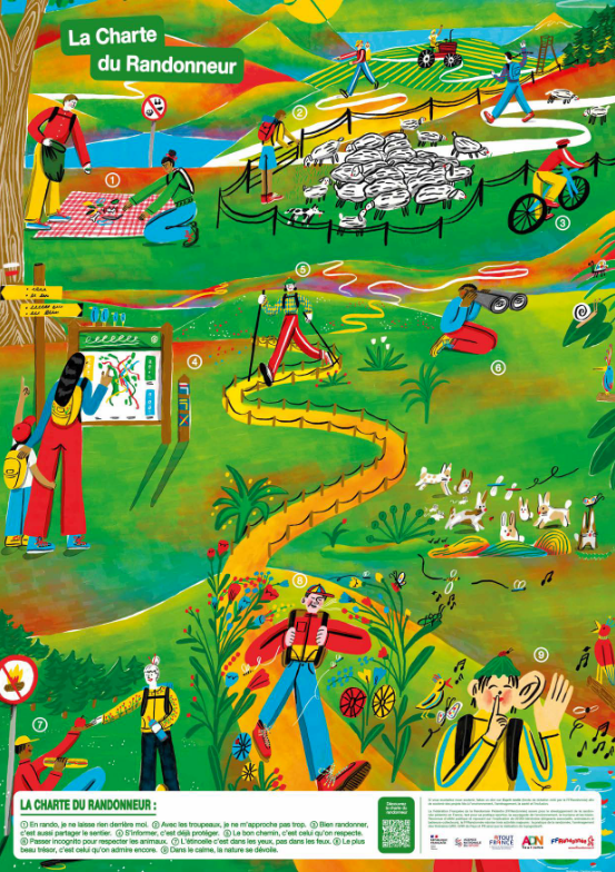"Charte du randonneur" de la Fédération Française de Randonnée Pédestre (FFR) : https://www.ffrandonnee.fr/randonner/la-charte-du-randonneur/les-bons-gestes
